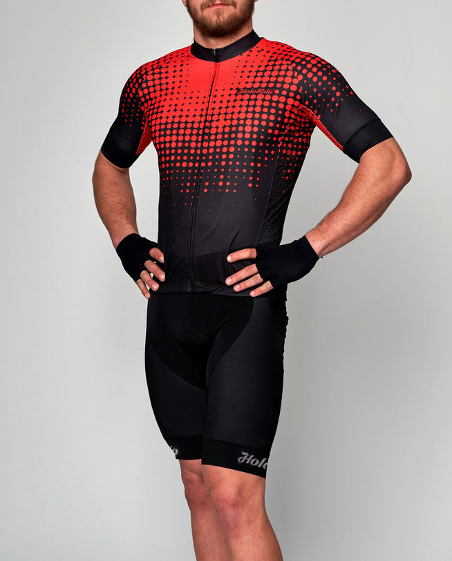 Dresy jsou precizně ušité z prodyšného materiálu, který odvádí pot, doplněné o elastický pás se silikonovým zakončením, který drží dres na svém místě. Tři velké zadní kapsy a přiléhavý střih zaručí potřebný komfort. Cyklistické kraťasy jsou vybavené vysokofunkční gelovou vložkou s antibakteriálním povrchem, která je zároveň pohodlná a zabraňuje tření. HOLOKOLO look doplní rukavice a ponožky z naší dílny.
