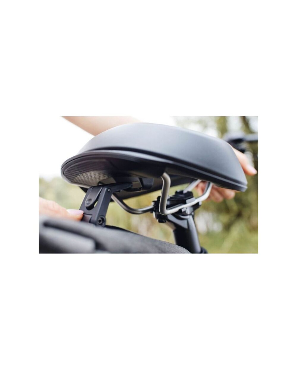 Sedlo On Open je speciálně navrženo pro elektrokola tak, aby zajistilo nejlepší možný komfort a ovladatelnost: jeho poddajné bočnice usnadňují šlapání, zatímco vyvýšená zadní část sedla vám pomůže najít okamžitě tu správnou pozici na sedle. Polstrování je vyrobeno z našeho Royalgelu, který v porovnání s klasickým polstrováním tlumí rázy o 40% lépe. Centrální výřez navíc ulevuje citlivým tkáním a zlepšuje ventilaci.