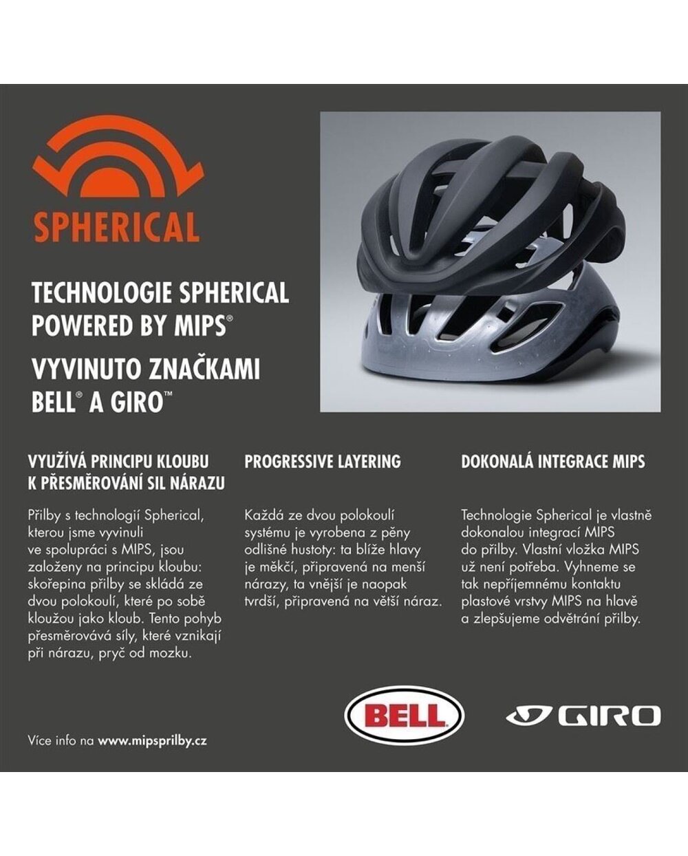 Lehčí, rychlejší, odvětranější. Aries Spherical je nejdokonalejší helma, jakou jsme kdy vyrobili. Profil jsme zmenšili na minimum, aby co nejlépe kopíroval siluetu hlavy. To spolu s nízkou hmotností a maximálním odvětráním pomocí 24 otvorů Wind Tunnel dává neuvěřitelné pohodlí při jízdě. Ale to hlavní se nachází uvnitř – Spherical Technology Powered by MIPS. Tato technologie je založena na principu kloubu. Skořepina se skládá ze dvou částí (polokoulí) vložených do sebe a spojených pomocí žlutých elastomerů. Celý systém vytváří jakési odpružení, které absorbuje síly v případě nárazu – polokoule se vůči sobě mohou pohnout a elastomery tlumí energii. Vnější skořepina je navíc vyrobena z tvrdšího materiálu, vnitřní je vyrobena z měkčího materiálu (technologie Progressive Layering). Celou přilbou navíc prochází speciální výztuha Aura Reinforcement Arch. Usazení na hlavě zajišťuje patentovaný upínací systém Roc Loc 5+ Air spolu s antimikrobiálními výstelkami Ionic+.