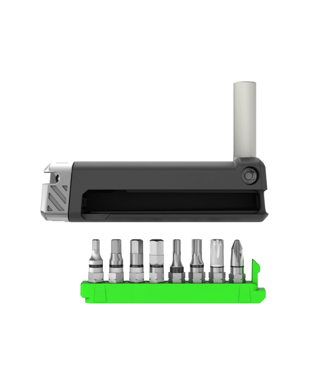 Naše ergonomické nářadí Greenslide se skládacím držákem bitů. Kompletní 11dílná sada obsahující nýtovač řetězu, rychloupínací držák a bity TORX a HEX. Pomocí jednotlivých dílů si můžete sadu dokonale přizpůsobit.