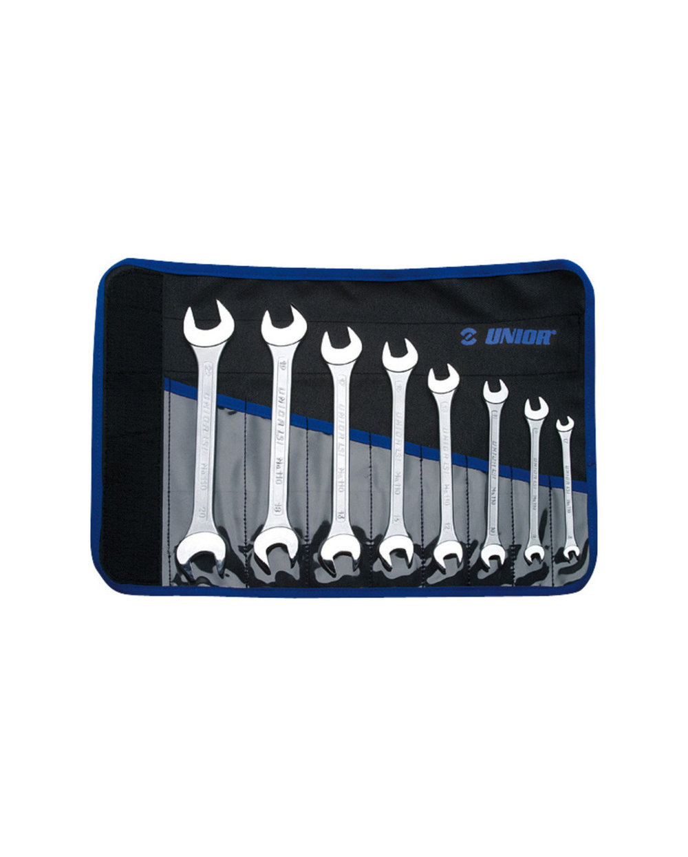 Unior Sada otevřených maticových klíčů v pouzdře, 110/1 (6 x 7), 110/1 (8 x 9), 110/1 (10 x 11), 110/1 (12 x 13), 110/1 (14 x 15), 110/1 (16 x 17), 110/1 (18 x 19), 110/1 (20 x 22)
