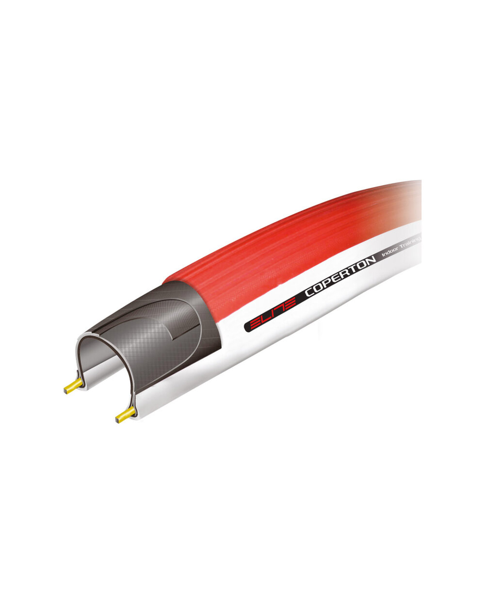 ELITE Coperton je určen výhradně pro jízdu v interiéru na cyklistickém trenažéru. Jedná se o speciálně vyvinutou cvičnou pneumatiku 700x25C navrženou tak, aby byla při jízdě co nejtišší a lépe spolupracovala s cvičným válcem než běžné silniční pneumatiky. Má měkčí směs, která snižuje vibrace, zlepšuje přenos síly a nepřehřívá se ani při delších trénincích. Používá se místo klasického silničního pláště, aby se prodloužila životnost válečku i pláště samotného a aby trénink probíhal hladce, tiše a bez zbytečného opotřebení vybavení. Nelze jej používat venku na silnici - je určen čistě pro jízdu v interiéru.