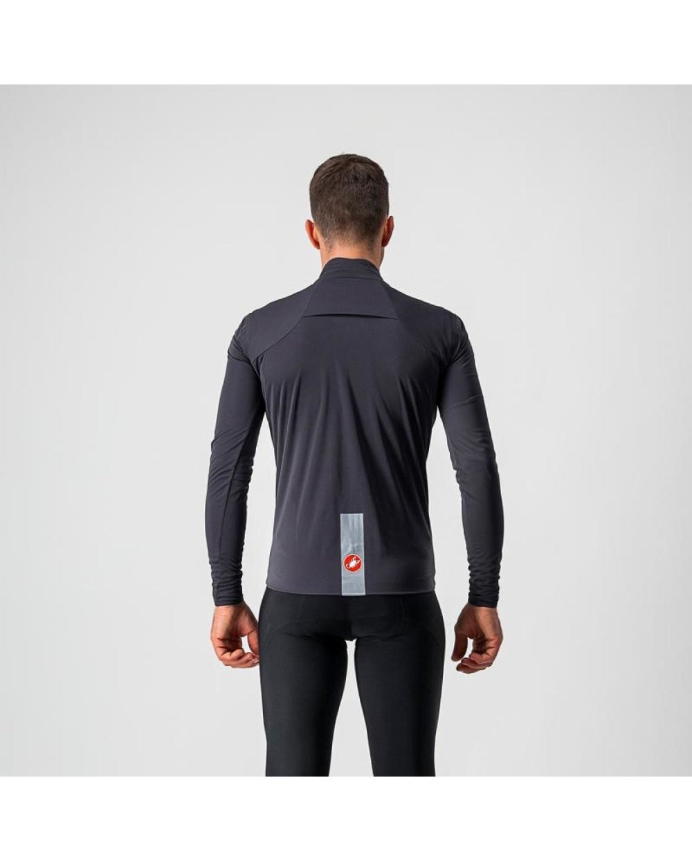Tkaninu jsme vyvinuli podle vlastních specifikací, abychom vytvořili bundu, která je zcela nepromokavá, pohodlně pružná, dostatečně sbalitelná, aby se vešla do kapsy dresu, a s designem, ve kterém bude skvěle vypadat. Měla to být hlavně bunda do deště, která se bude nosit přes dres, takže jsme upustili od vnějších kapes a zachovali jednoduchou konstrukci, abychom minimalizovali počet švů. Přidali jsme odvětrávání na zádech, abychom zabránili přehřátí, přidali jsme překrytí zipu, aby se dovnitř nedostala stříkající voda, a reflexní plochu pro vaši bezpečnost.