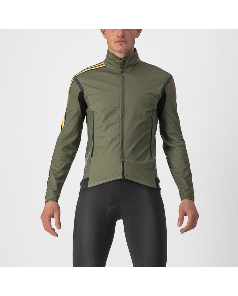 Exkluzivní přední díl CASTELLI GORE-TEX INFINIUM™ WINDOSTOPPER® 205 Warm, je voděodolný a uvnitř má měkký fleece.
