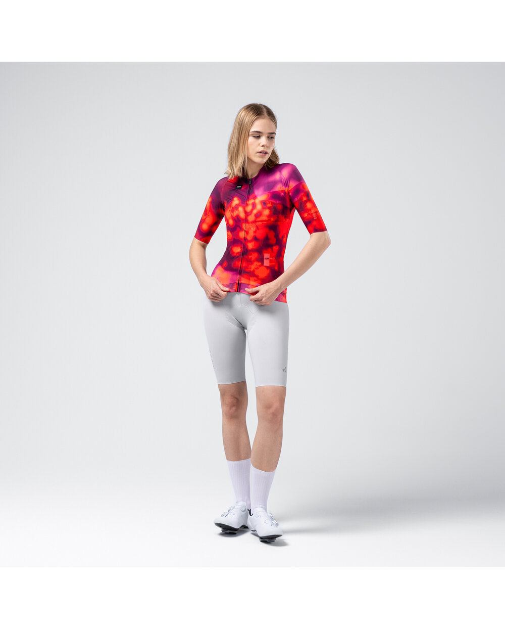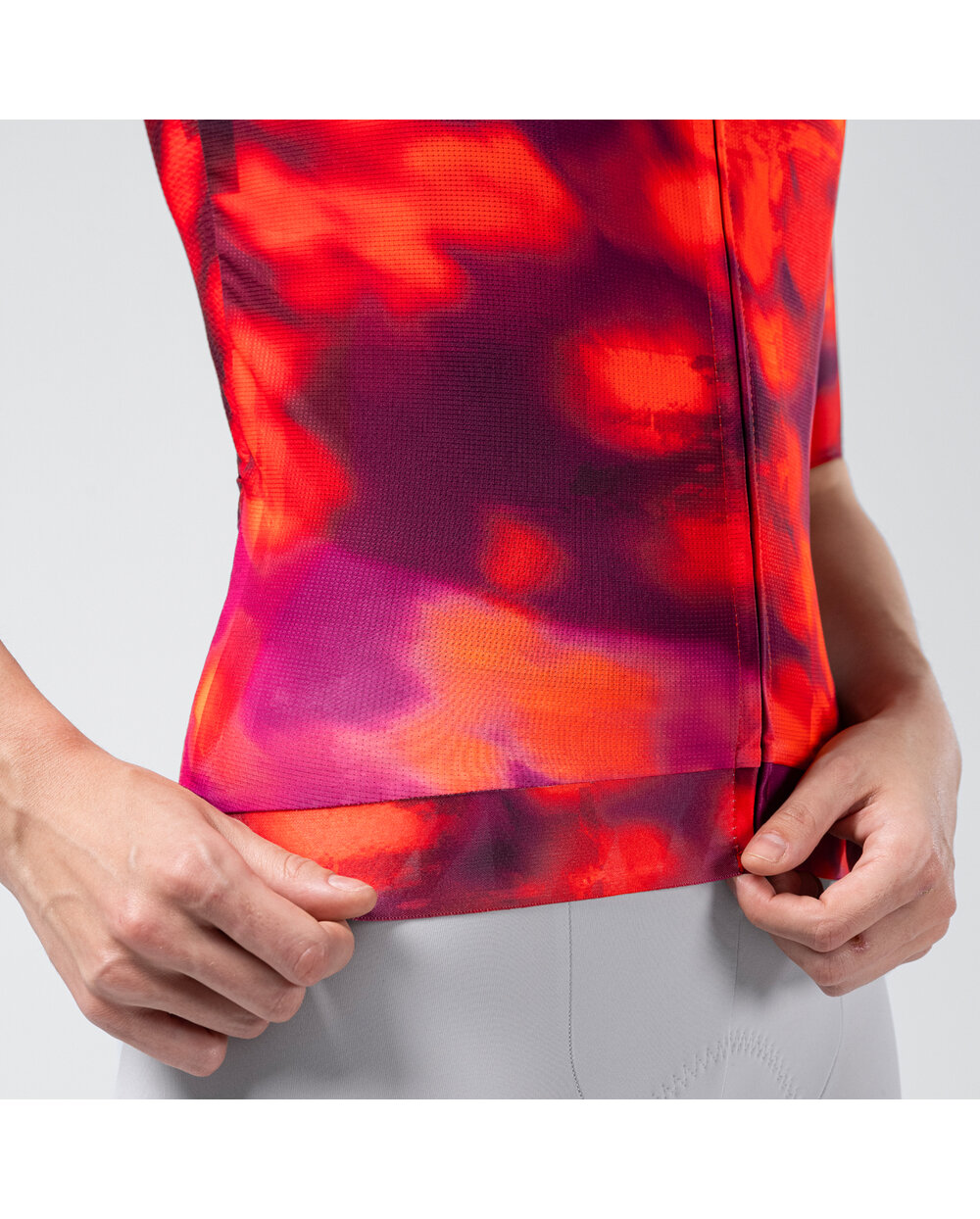 Dres, který si získal důvěru náročných cyklistů díky schopnosti spojit lehkost, přesné přiléhání a vysoký výkon v jednom oděvu. Jeho elegantní design a technická konstrukce přinášejí přirozenější, plynulejší a pohodlnější zážitek z jízdy, ať už při intenzivním výkonu nebo na dlouhých trasách. Přední část využívá stejný mikroperforovaný materiál jako zadní, čímž podporuje nepřetržité proudění vzduchu a pomáhá udržovat tělo svěží a suché. Rukávy s čistým střihem beze švů eliminují tření a přesně se přizpůsobují, čímž zvyšují stabilitu a aerodynamiku bez ztráty komfortu. Na bočních panelech působí materiál AIRLIGHT jako aktivní kanál pro proudění vzduchu, přičemž ventilace se zvyšuje s rostoucí rychlostí. Pás, vyztužený rozšířenou elastickou a mikrosilikonovou páskou, zajišťuje pevné, prodyšné a stabilní držení po celou dobu jízdy. Dres navržený pro ty, kteří chtějí jít za hranice výkonu – pro ty, kteří jezdí s cílem, přesností a stylem.