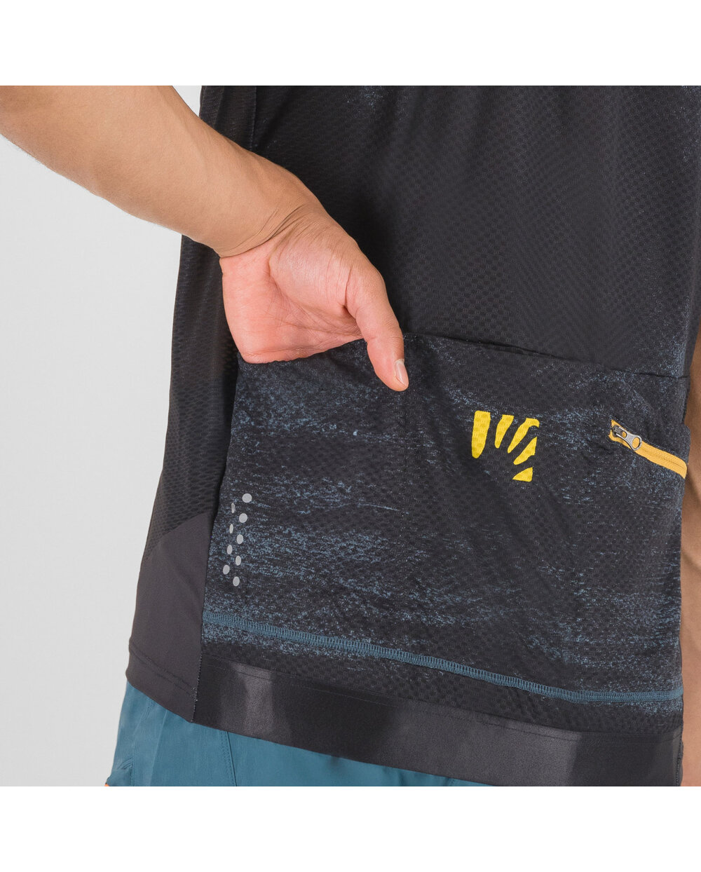 Letní MTB dresKarpos Green Fire je vyroben z dvojice funkčních materiálů, které poskytují optimální pohodlí i při celodenním ježdění. Na přední straně je měkký, elastický materiál, který zajišťuje přiléhavost. Lepší odvod potu od pokožky (i při nošení batohu) zajišťuje perforovaný materiál na bocích, rukávech a zádech. Pro uložení všech potřebných věcí je dres vybaven 3 prostornými kapsami a menší vnitřní kapsičkou.