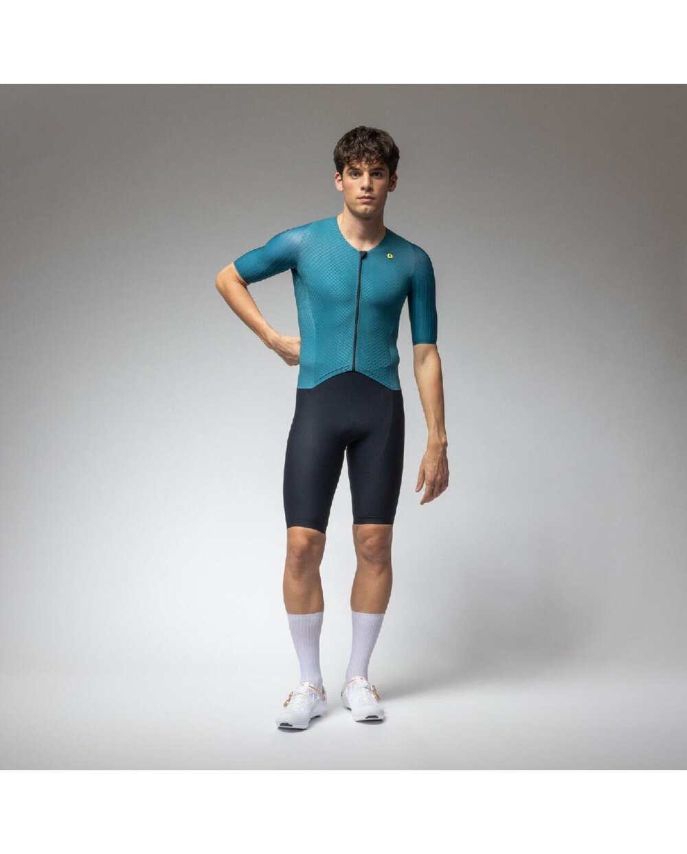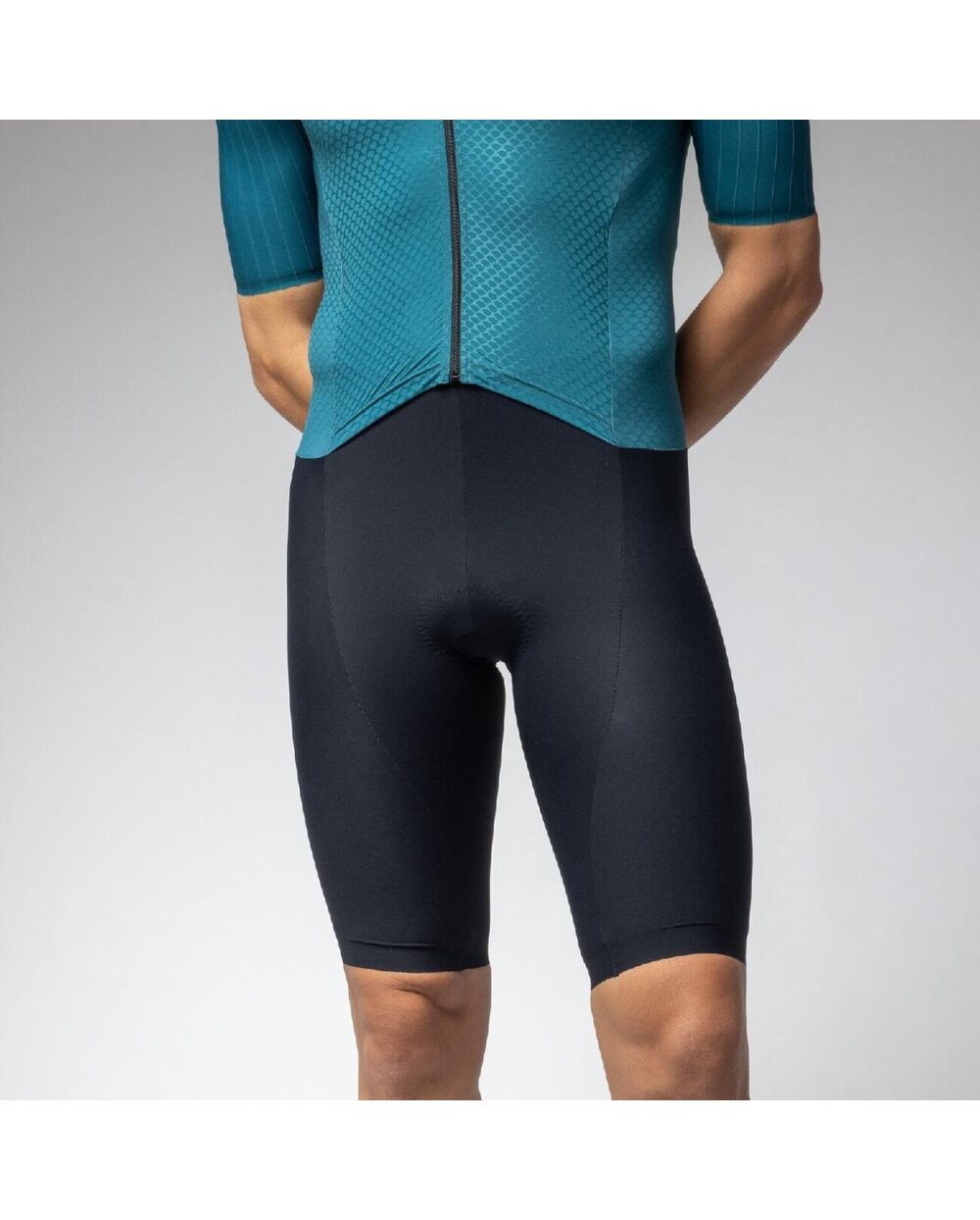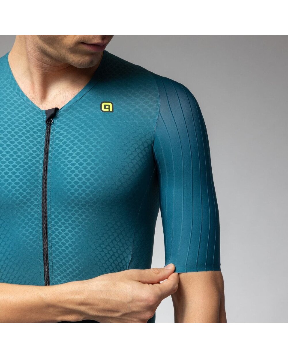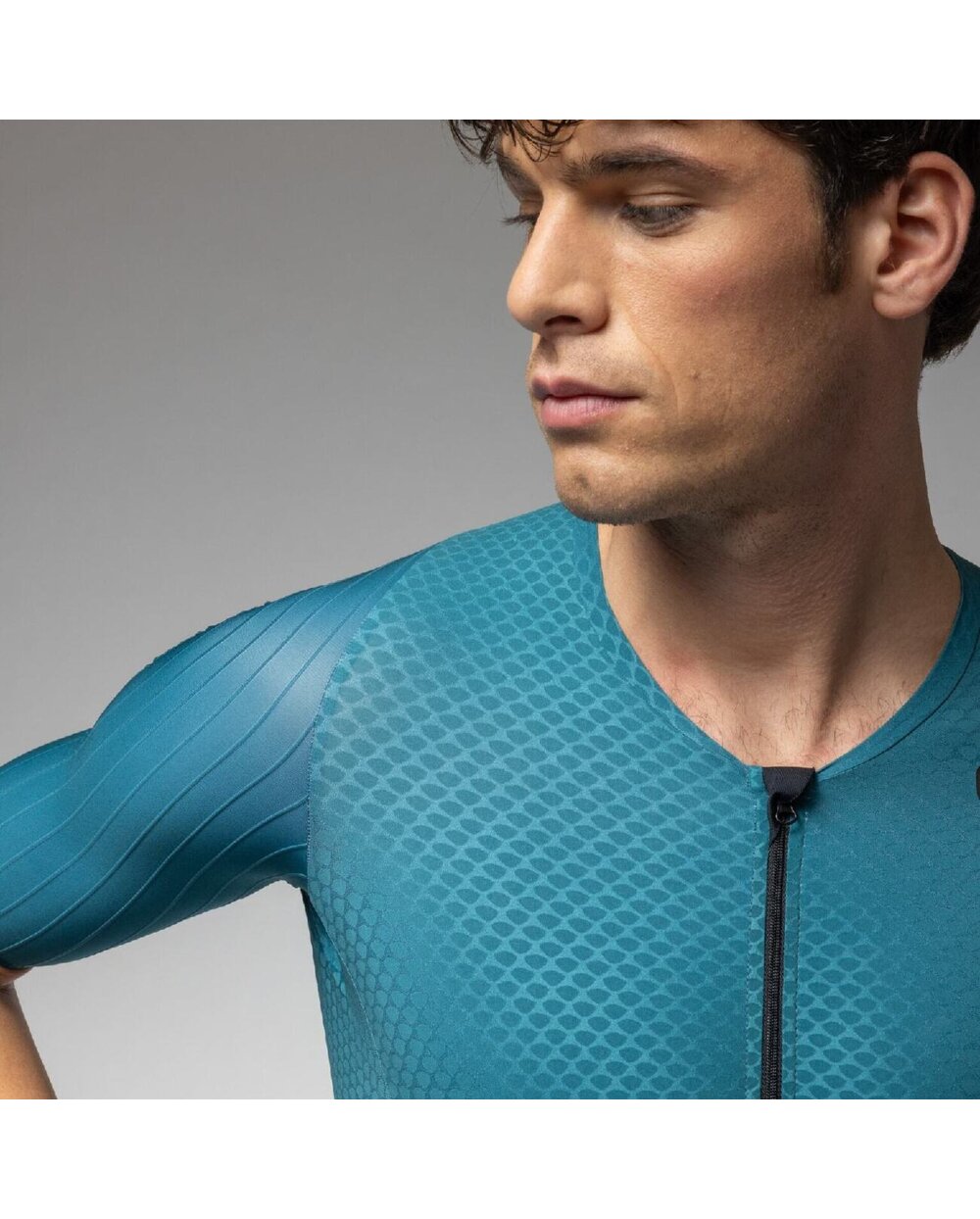 Rukávy s raw-cut zakončením z 3D strukturované tkaniny s kanálky podporují plynulý pohyb a optimální proudění vzduchu. Kalhotová část s minimem švů zajišťuje účinnou kompresi, stabilitu a spolehlivou svalovou oporu po celou dobu závodu.