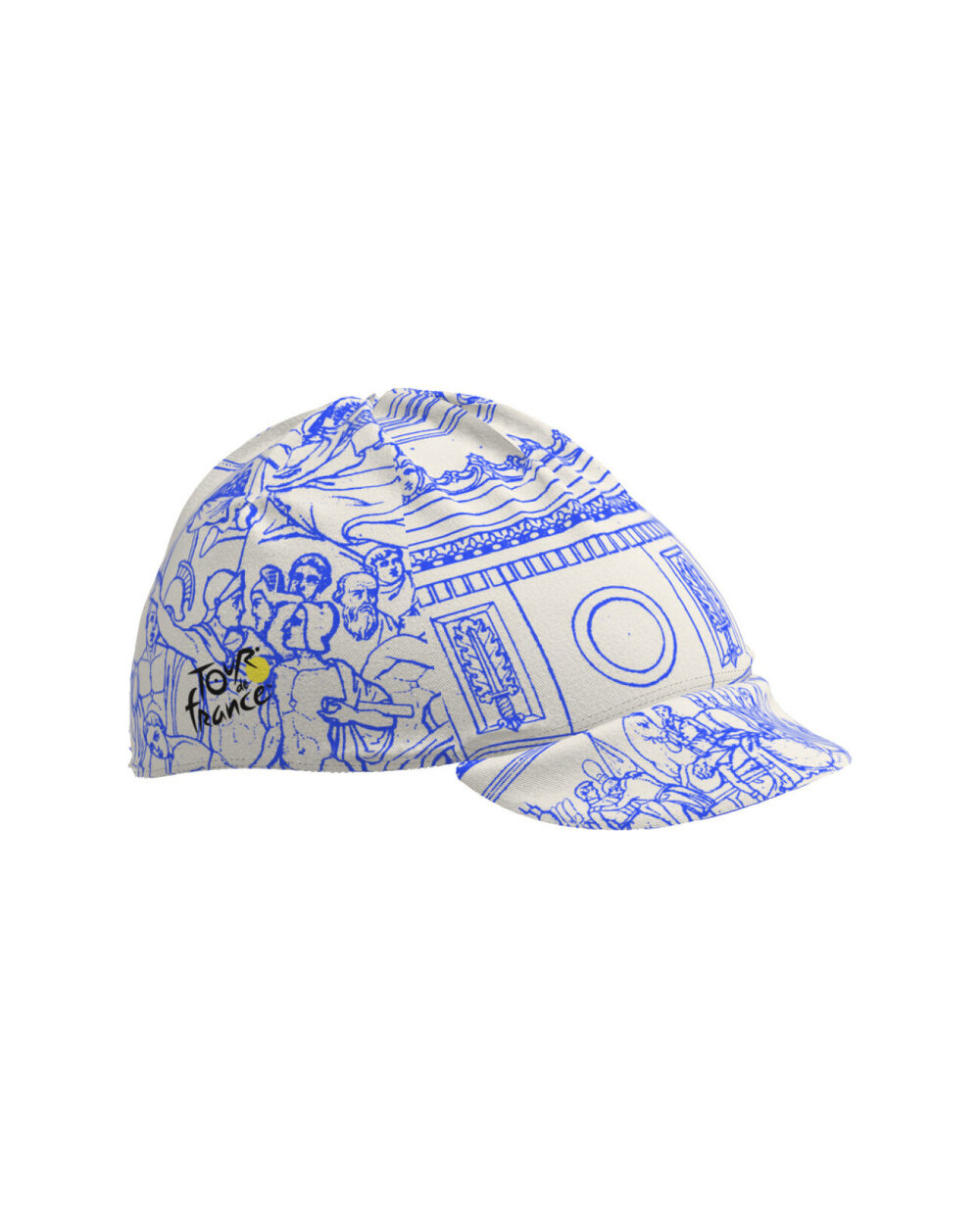 Vytvořené s měkkou bavlněnou centrálním panelem a tištěnými bočními pásy síťové sítě zajišťuje uzávěr vynikající ventilaci a bezkonkurenční pohodlí a udržuje hlavu chladnou i během nejintenzivnějších jízd. Design vzdává hold kráse a vznešenosti Paříže: Bílá základna je obohacena o modré detaily zobrazující složitou siluetu Arc de Triomphe. Tento nadčasový symbol francouzského hlavního města je zastoupen jemnými moderními liniemi, zachycujícím podstatu města a elektrizující atmosférou Champs-Olysées, kde každoročně uzavírá Tour de France.