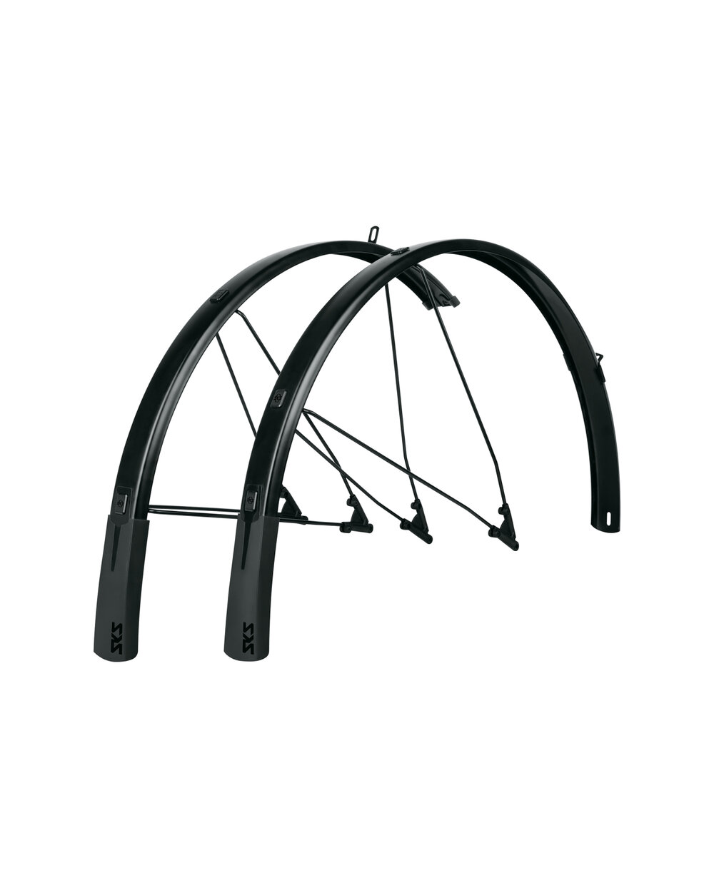 SKS Bluemels Style je sada blatníků s flexibilním spoilerem, který nabízí vynikající všestrannou ochranu proti stříkající vodě. Díky flexibilní sendvičové konstrukci, ve které jsou ultrajemné hliníkové lišty zapuštěny do plastového povlaku, je blatník extrémně robustní, tuhý a odolný vůči korozi. Model má nový V-adaptér s bezpečnostním systémem ESC, který odpojí dvojité U-vzpěry, pokud se mezi hroty zachytí větve. To by mělo zabránit zadření kola. S matným černým povrchem a černými upevňovacími prvky mají blatníky jednotný design a vynikají také vzhledem.Včetně příslušenství a držáků.• Hliníková/plastová sendvičová konstrukce • S flexibilním spoilerem • V-adaptér s bezpečnostním systémem ESC • Robustní dvojité U-vzpěry • Robustní dvojité U-vzpěry. Německo
