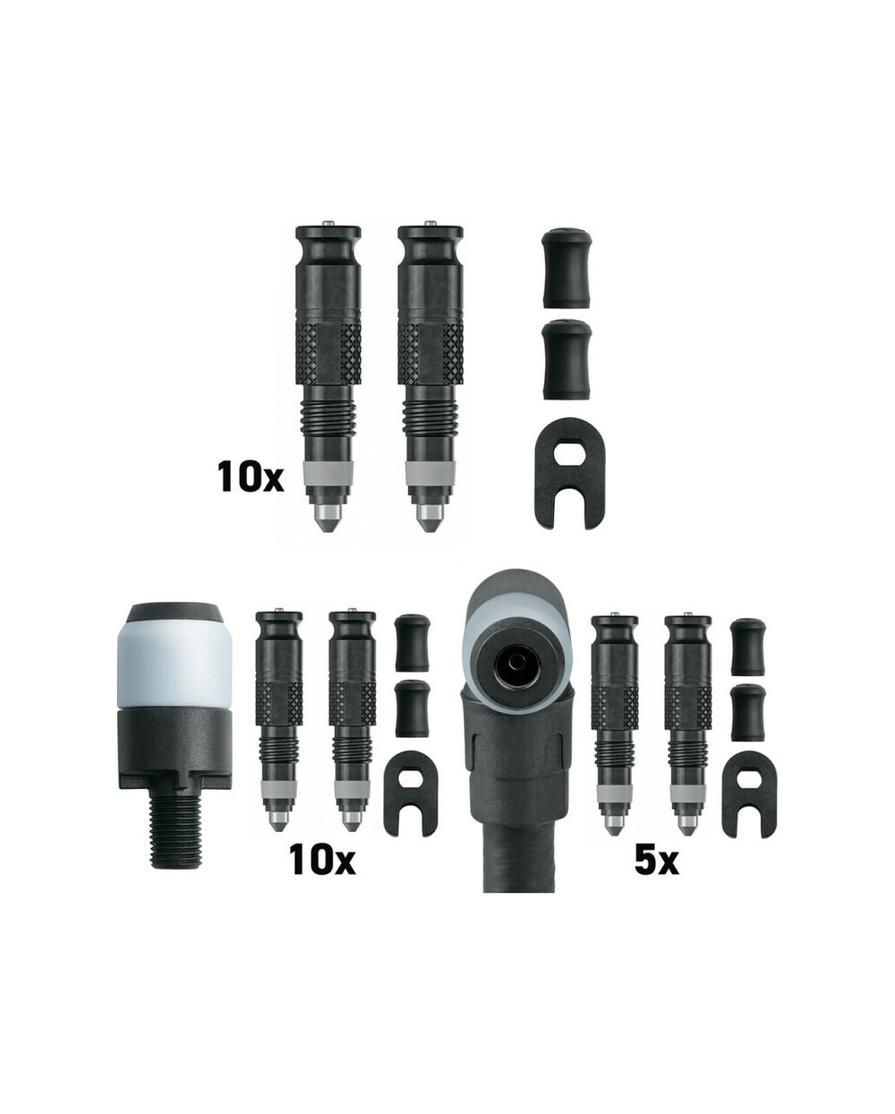 S touto sadou můžete snadno přestavět svůj stávající ventil Presta na moderní systém "CLIK VALVE", což znamená rychlejší a pohodlnější vrtání bez zbytečných úniků vzduchu. Součástí balení je adaptér pro hlavu pumpy plus vložky ventilu a náhradní nástroj.