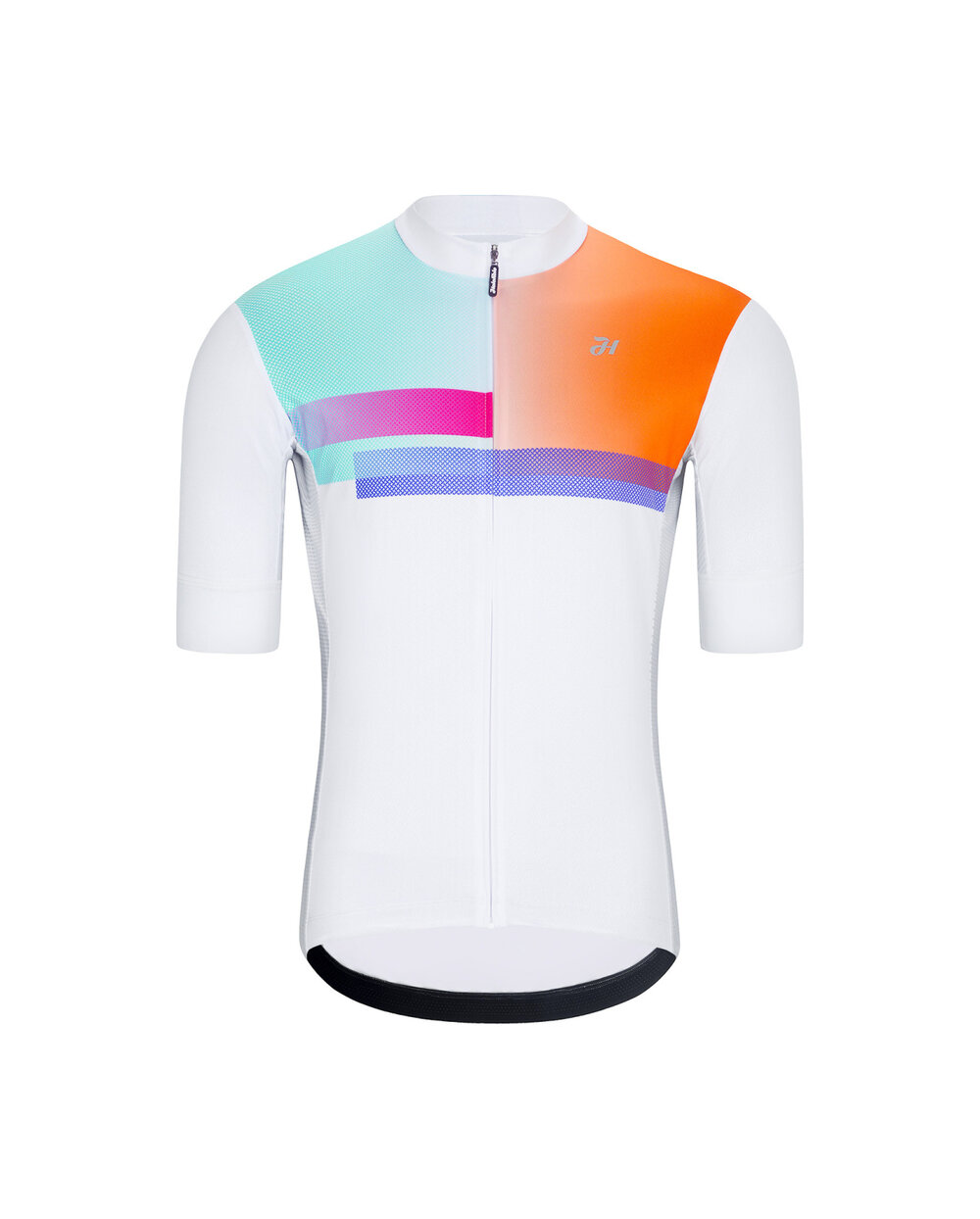 Dres HOLOKOLO SPECTRO je vyroben z odolného a elastického materiálu, který se přizpůsobí pohybům těla a zároveň zvládne i časté používání. Síťované panely na bocích a pod pažemi podporují ventilaci a efektivní odvod potu, takže se budete cítit svěží i během teplých dnů. Praktické vybavení zahrnuje klasickou trojitou zadní kapsu, bezpečnostní kapsu na zip a protiskluzové zakončení na spodním lemu i rukávech. Abstraktní design s barevnými akcenty dodává dresu moderní sportovní vzhled.