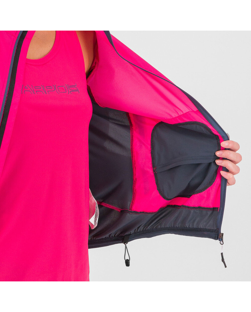 2 přední kapsy na zip poskytují dostatek prostoru pro bezpečné uložení osobních věcí.