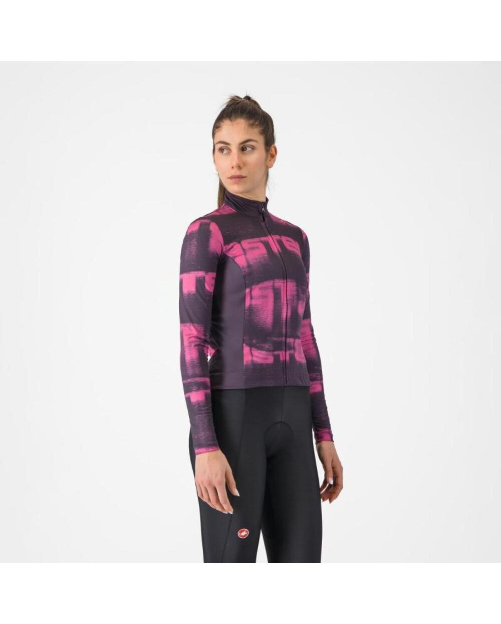 Cyklistický dres s dlouhým rukávem zimní CASTELLI BLUR THERMAL černá/fialová