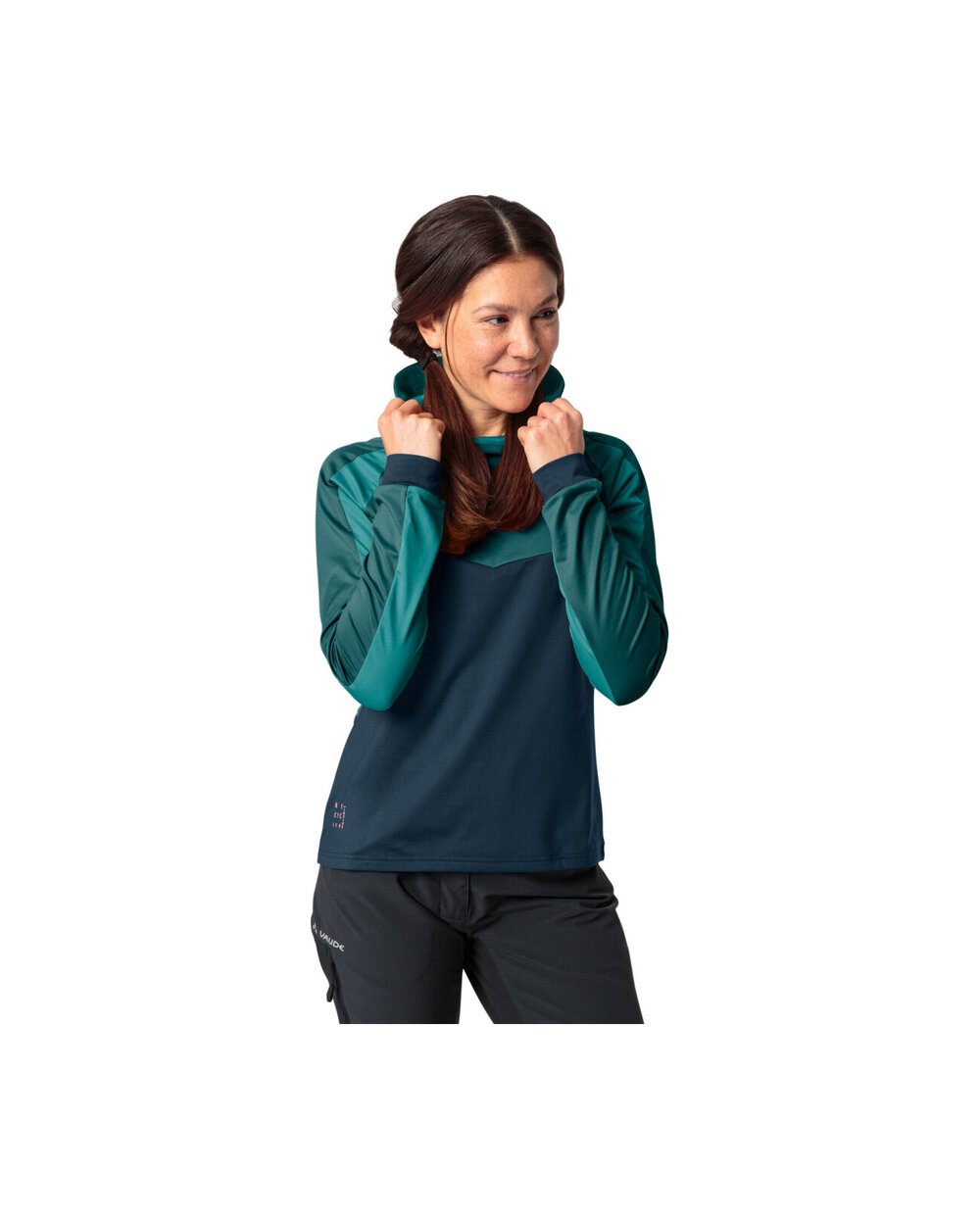 teplý pohodlný dámský cyklistický dres pro zimu - Jednoduchý, ale vysoce funkční multifunkční dres - Teplý dres kapuce vyrobený z recyklovaného polyesteru nabízí úplnou svobodu pohybu díky vysokému podílu úseku