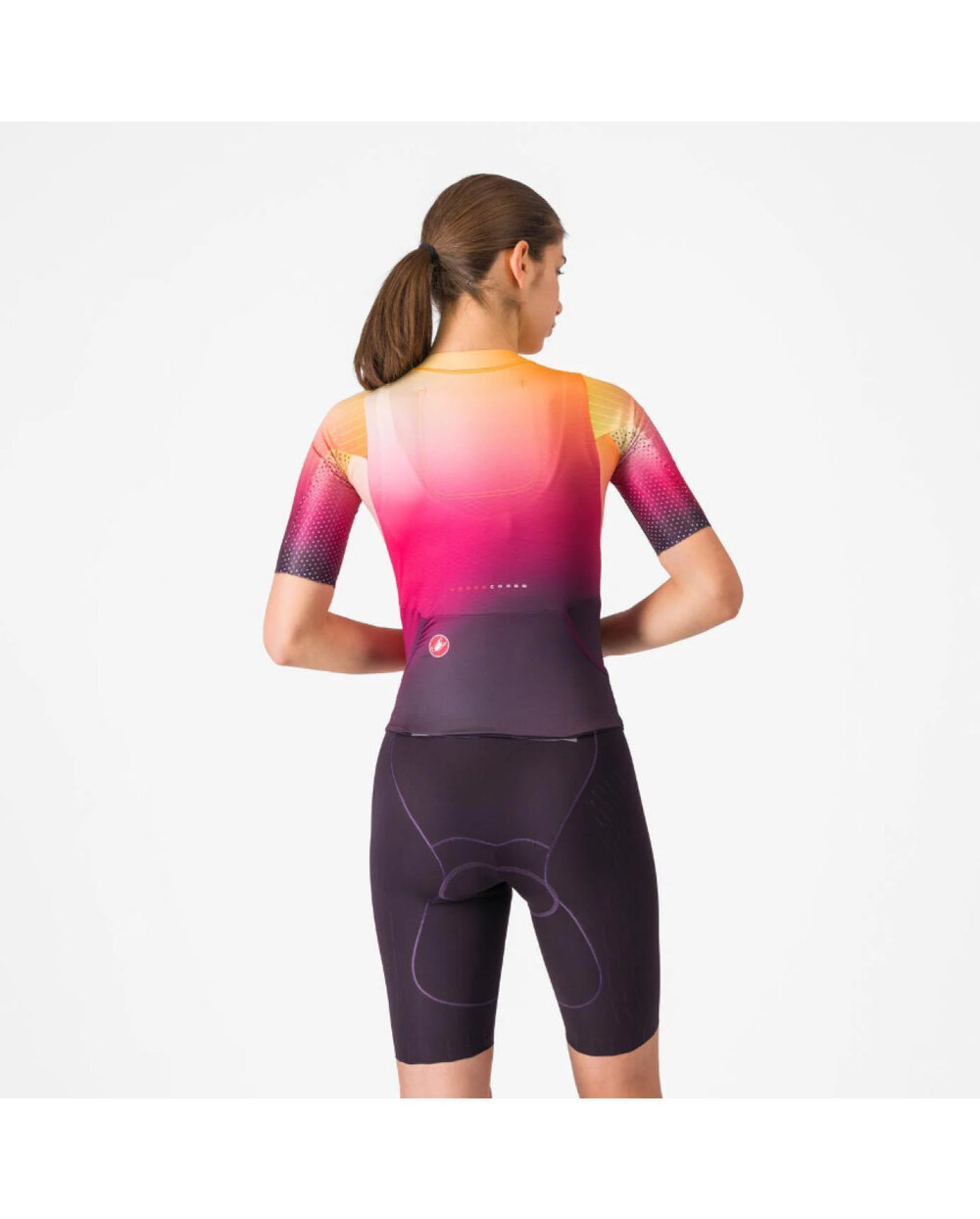 Přední otvor CASTELLI Sanremo usnadňuje ohýbání při jízdě na kole a narovnávání při běhu a plavání a zároveň umožňuje dodatečné větrání při mimořádně horkých bězích