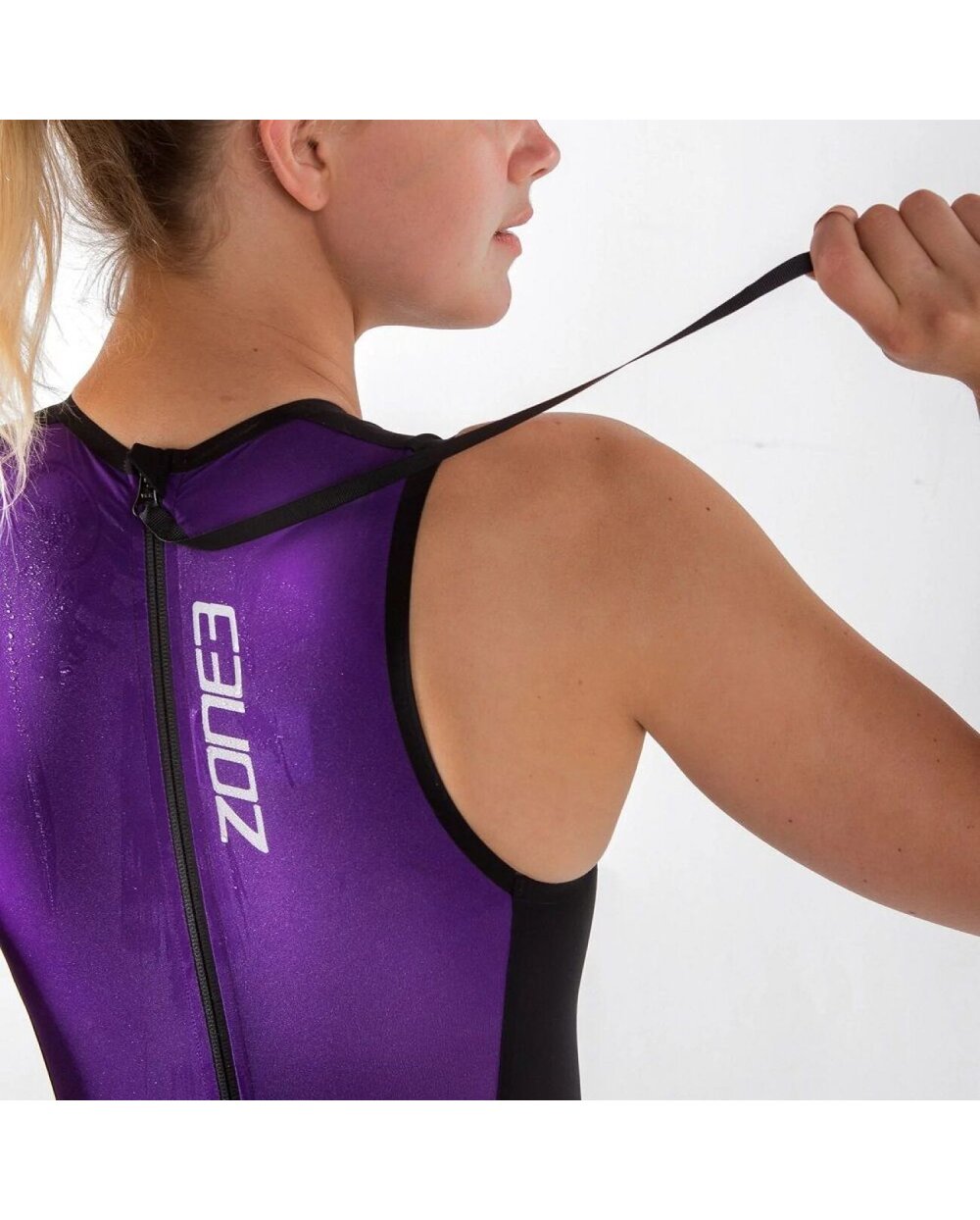 Zone3 Streamline Sleeveless Swimskin jsou dámské plavky bez rukávů určené pro triatlonisty a plavce, kteří chtějí zlepšit svou hydrodynamiku a rychlost při plavání bez neoprenu. Je to lehká a kompresivní plavecká kůže, která se nosí přes závodní soupravu nebo trikoty a pomáhá snižovat voděodolnost a podporuje efektivnější a rychlejší plavání. Oblek je vyroben z lehké italské tkaniny s vysokou kompresí a obsahuje hydrofobní (vodoodpudivé) vrstvy, které minimalizují absorpci vody a udržují tvar během výkonu. Švy jsou celosvařované a materiál je pokryt nano-povrchovou úpravou, díky které je komfort nošení vysoký a voděodolnost nízká. Zadní zip usnadňuje nazouvání a svlékání, zatímco jasnější zadní panel zlepšuje viditelnost ve vodě.