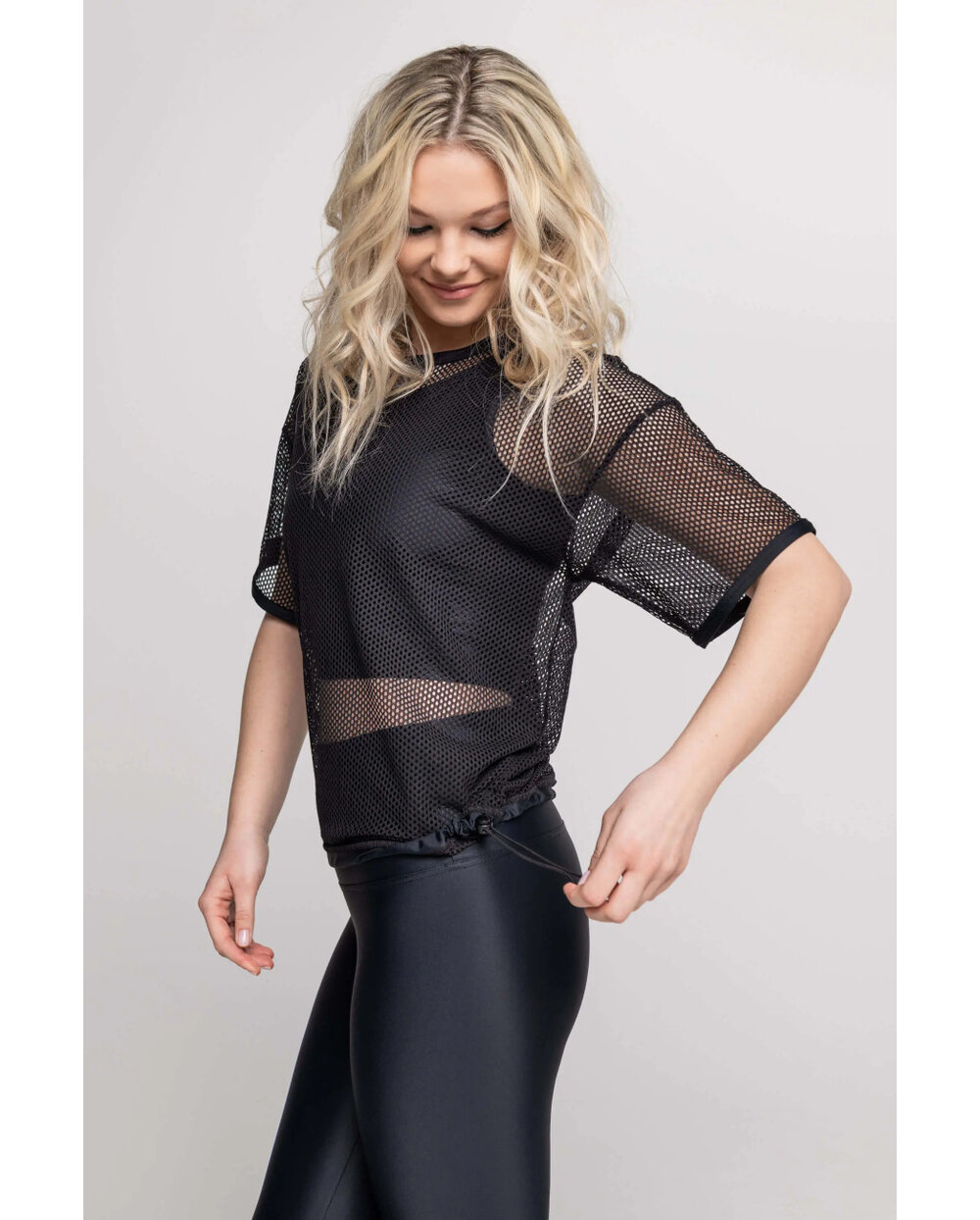 Speciální na tomto tričku je jeho nositelnost - spodní lem má odnímatelnou gumičku, kterou si můžete sundat, kdykoli se vám zachce, například když cvičíte se sklopenou hlavou. :-) Díky této funkci se můžete s tímto tričkem bavit i v různých stylech. Hodí se ke všem našim legínám a podprsenkám.