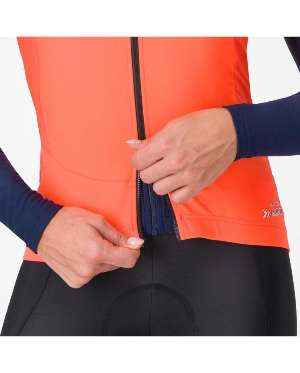 Perfektní vesta do chladného počasí. Technologie CASTELLI Ristretto izoluje a zároveň umožňuje omezené proudění vzduchu, aby vaše střední část těla zůstala v suchu. Středně silná vesta pro chladné teploty poskytuje střední izolaci s vynikající prodyšností. Technologie tkaniny CASTELLI Ristretto Lite pro bezkonkurenční prodyšnost, teplo a sucho s úpravou DWR bez PFAS. Strečová tkaná záda pro flexibilitu s vynikající prodyšností. Snadno posuvný zip YKK® Vislon® s horním a spodním otevíráním. 3 kapsy s vnitřním bezpečnostním okrajem. Reflexní lemování ve spodní části kapsy pro lepší viditelnost. CASTELLI se spojila s inovátorem materiálů ITTTAI® a vytvořila exkluzivní tkaninu, která kombinuje pokročilou elasticitu, prodyšnost a ochranu proti vodě díky odborným znalostem ITTTAI® v oblasti membrán a laminace.Velikosti: XS-XLHmotnost: - gTeplotní rozsah: 10-15°CFit: tělesná hmotnostOdolnost proti vodě: mokré vozovkyOdolnost proti větru: přední a zadní barva285 černá růžová, 502 nočních stínů Materiálové složení: Hlavní vnější materiál 100 % polyester Hlavní vnitřní materiál 70 % polyester 30 % elastan Záda, vnitřní límec 78 % polyester 22 % elastan Zadní spodní část 70 % polyamid 30 % elastan Tato vesta je vyrobena, když potřebujete být během jízdy v teple. Je to naše nejteplejší vesta, ale díky své výjimečné prodyšnosti pokrývá široký teplotní rozsah. Díky technologii materiálu CASTELLI Ristretto je tak univerzální. Materiál je navržen s prodyšností, takže je větruodolný, ale propouští velmi málo vzduchu, což odvádí více potu a udrží vás v suchu. Přední část je vyrobena ze středně těžké verze materiálu Ristretto, zatímco zadní část je vyrobena z elastické tkaniny pro ještě větší prodyšnost. Zůstanete v suchu, což znamená, že se udržíte v teple i s tenčí vestou. Ventilaci můžete nastavit pomocí dvojitého zipu YKK® Vislon®. Tři prostorné zadní kapsy pojmou vaše vybavení. Límec je dostatečně vysoký, takže nákrčník můžete nechat doma.
