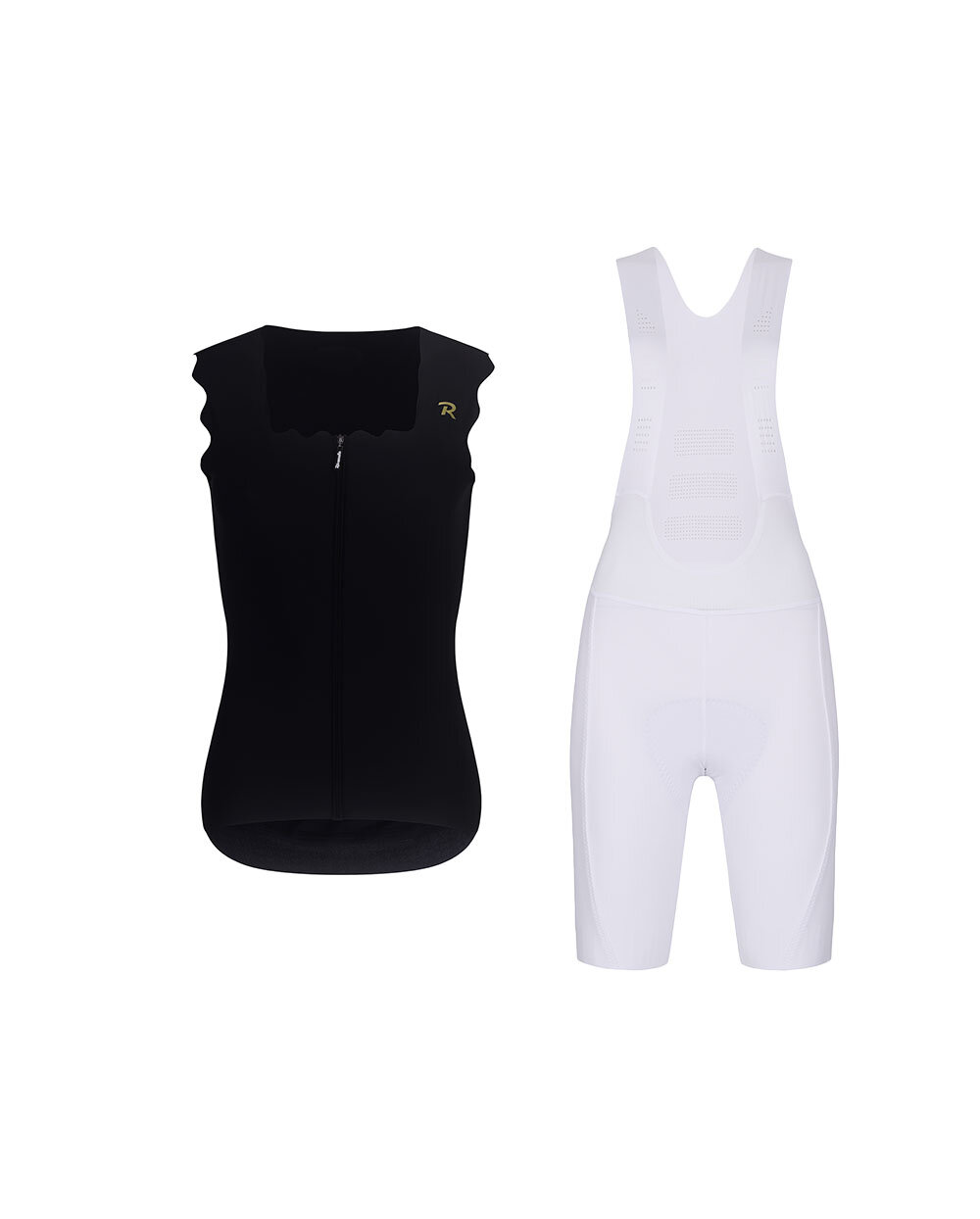 Stylový a funkční cyklistický set Rivanelle spojuje výrazný design s pohodlím a výkonem, které oceníte při sportovních i rekreačních vyjížďkách. Kombinace černého bezrukávového dresu SCALLESSA a bílých kraťasů s trakami NOVEL PRO vytváří elegantní, moderní outfit pro cyklistky, které chtějí na kole vypadat skvěle a zároveň se cítit maximálně pohodlně.