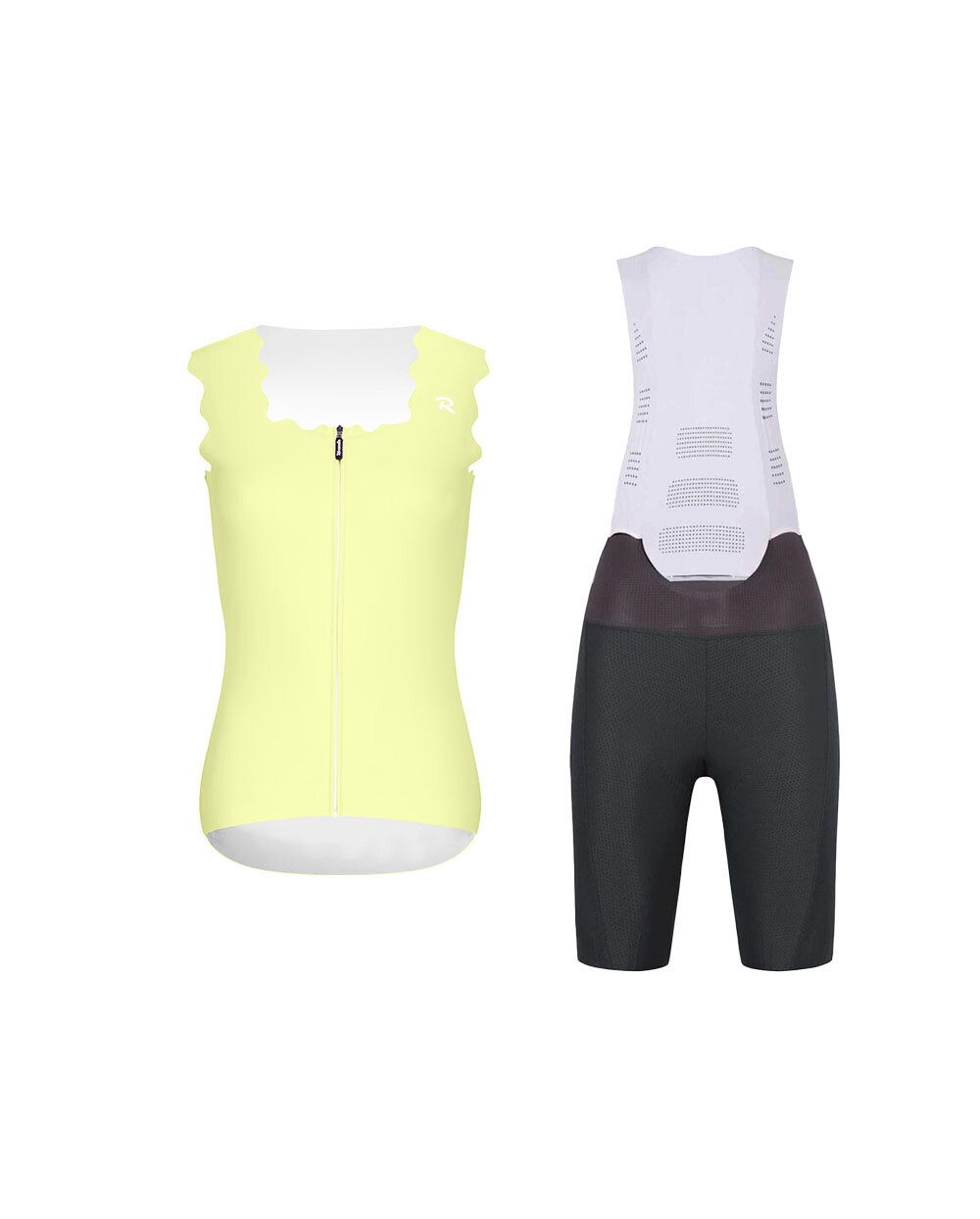 Dámská cyklistická sada Rivanelle SCALLESSA + NOVEL PRO je ideální volbou pro cyklistky, které chtějí spojit styl, pohodlí a funkční výkon v jednom dokonale sladěném outfitu. Bezrukávový dres SCALLESSA ve žluté barvě zaujme na první pohled originálním vlnitým lemováním, širšími ramínky a elegantním čtvercovým výstřihem, který lichotí postavě a dodává sportovnímu vzhledu výjimečný ženský detail. Samozřejmostí je celopropínací přední zip s ochranou krku, trojité zadní kapsy doplněné bezpečnostní kapsou na zip a bezešvý lem s protiskluzovým potiskem pro spolehlivé držení během jízdy.